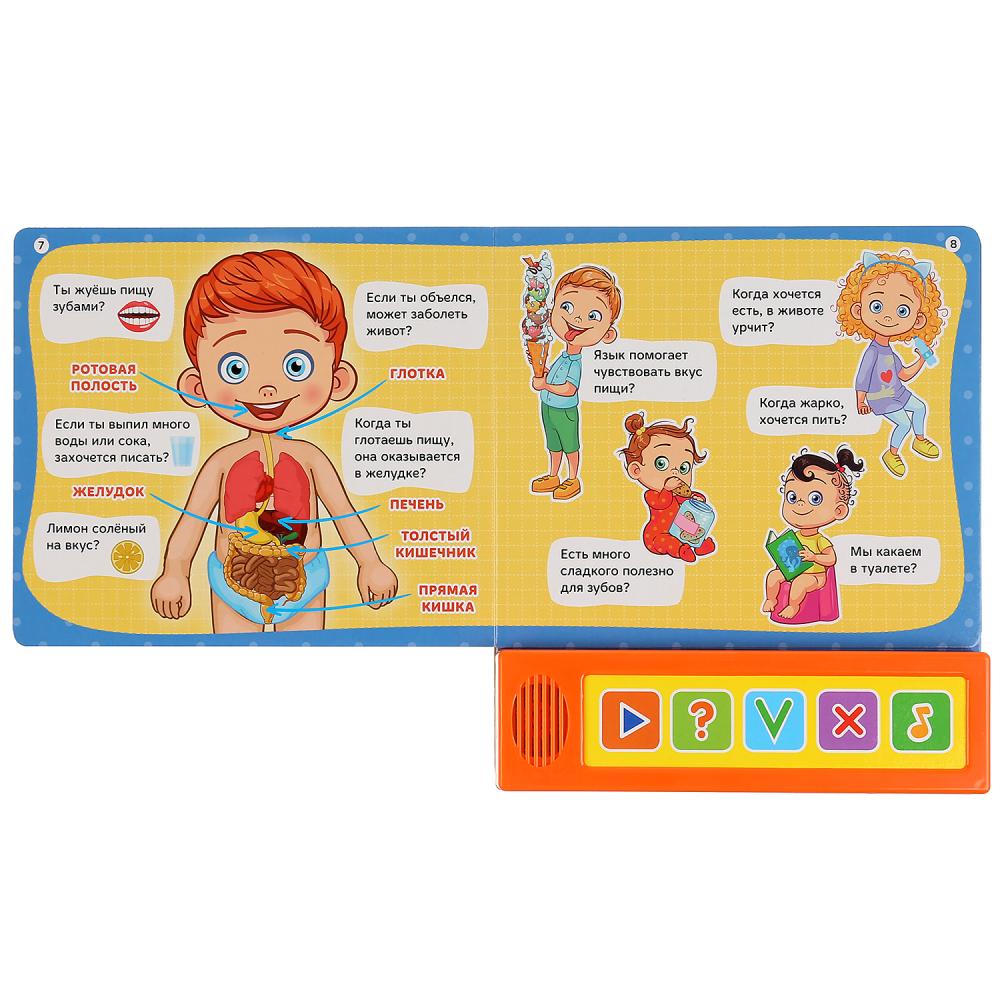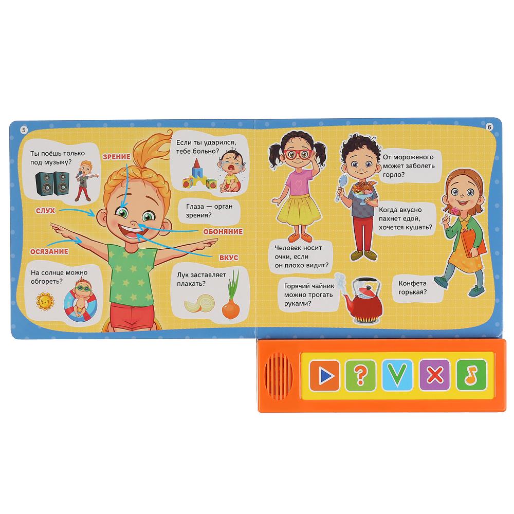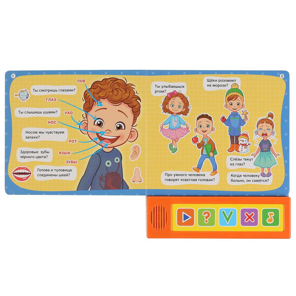 Книга в лёгкой игровой форме расскажет малышу о том, как устроено тело человека. Для закрепления полученных знаний предлагается ответить на вопросы викторины, используя функциональные кнопки на панели снизу. Благодаря компактному формату книгу удобно взять с собой в дорогу.