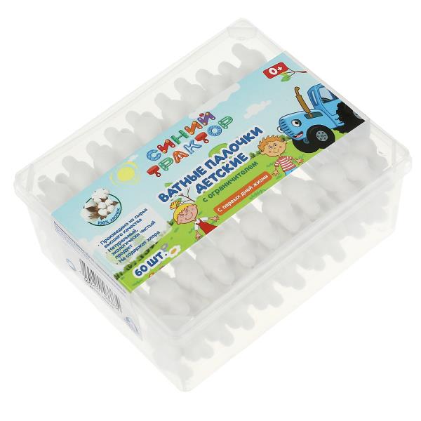 Ватные палочки СИНИЙ ТРАКТОР с ограничителем (60шт.)