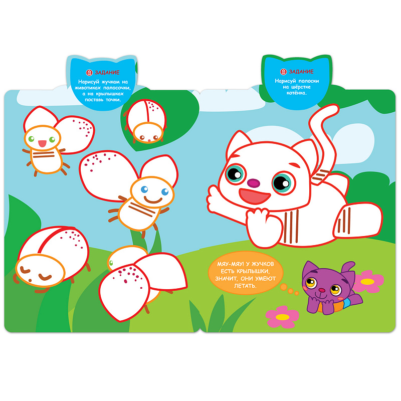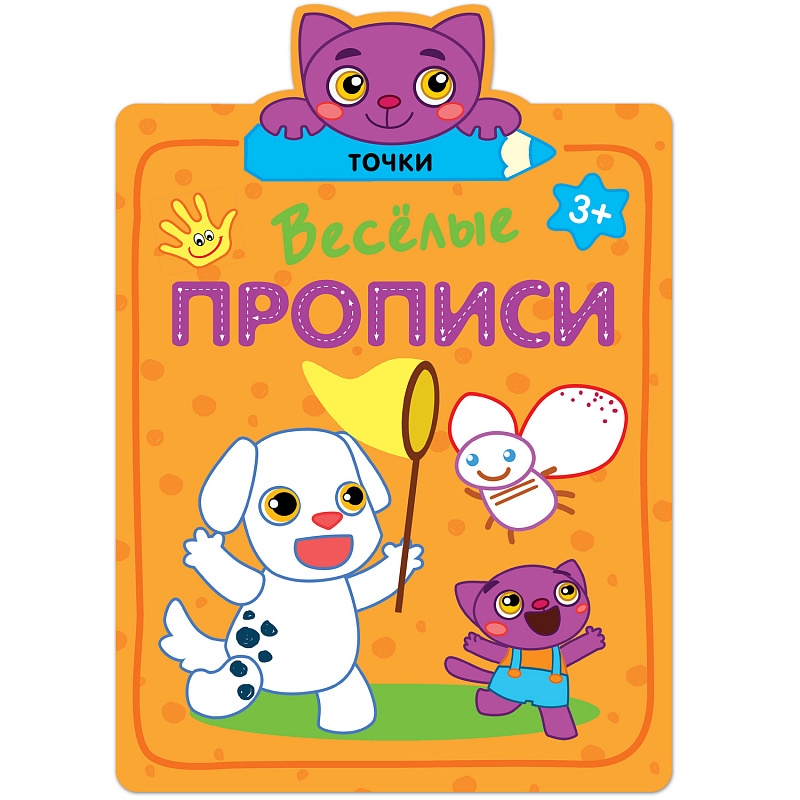 А Ваш ребенок уже умеет писать? Яркая рабочая тетрадь «Точки» серии «Веселые прописи» предназначена для развития мелкой моторики и подготовки руки к письму у детей в возрасте от 3 лет. Следуя за очаровательным фиолетовым котенком, ребенок рисовать пятнышки, точки и черточки. Ему предстоит, используя подсказки, дорисовать забавные картинки. Это несложно и очень весело! Книги серии «Веселые прописи» изготовлены из плотной бумаги, поэтому в них можно рисовать даже фломастерами. Благодаря удобному формату, их можно не только использовать дома, но и брать с собой повсюду: в поездки, гости и т.д.
