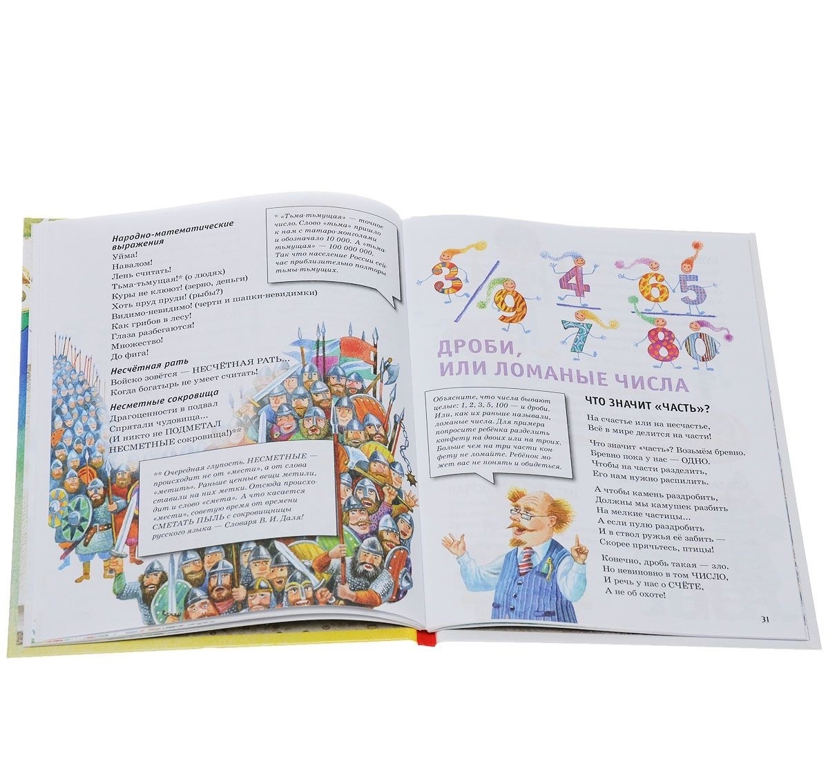 С ним юный читатель не только научится правильно считать, но и разберётся, в чём разница между простыми и сложными числами, овладеет навыками сложения, вычитания и деления и, возможно, даже запомнит таблицу умножения.