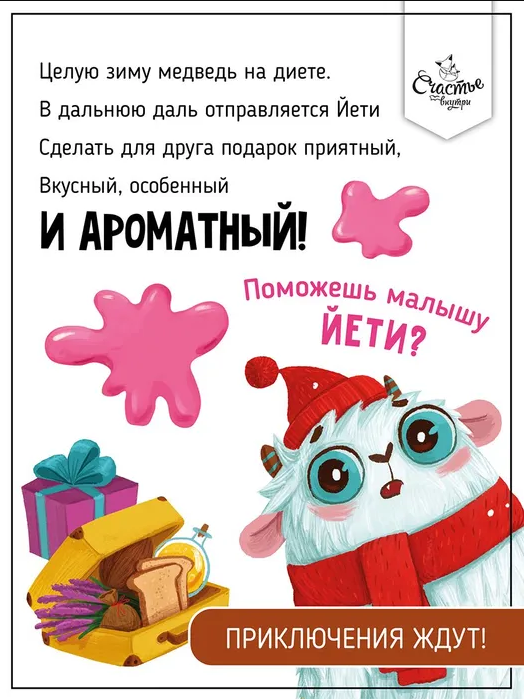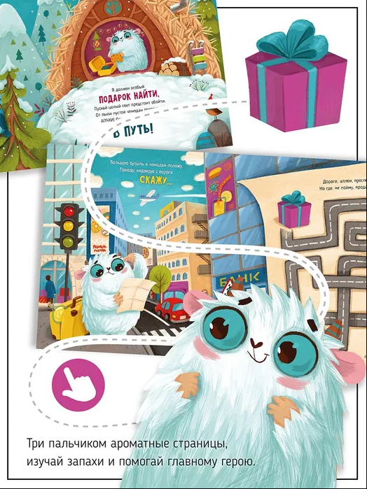 Скорее открывай книгу и присоединяйся к путешествию веселого Йети! Ему предстоит объехать много разных стран, чтобы найти для друга - медведя самый лучший и ароматный подарок на День рождения! Вместе с героями ребёнок встретиться с ароматом райского кокоса, почувствует морской бриз, окунётся в поле душистой лаванды, отыщет путь к магазину с сочным мармеладом и многое другое.