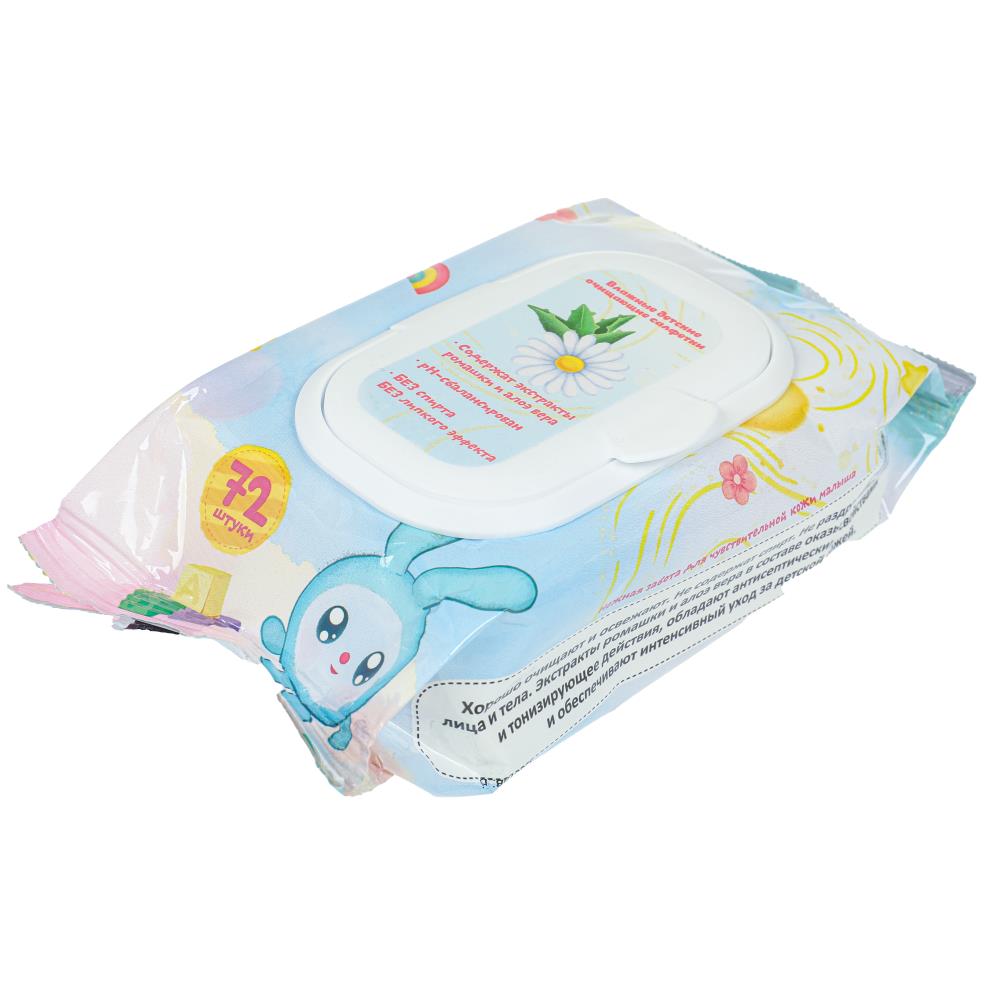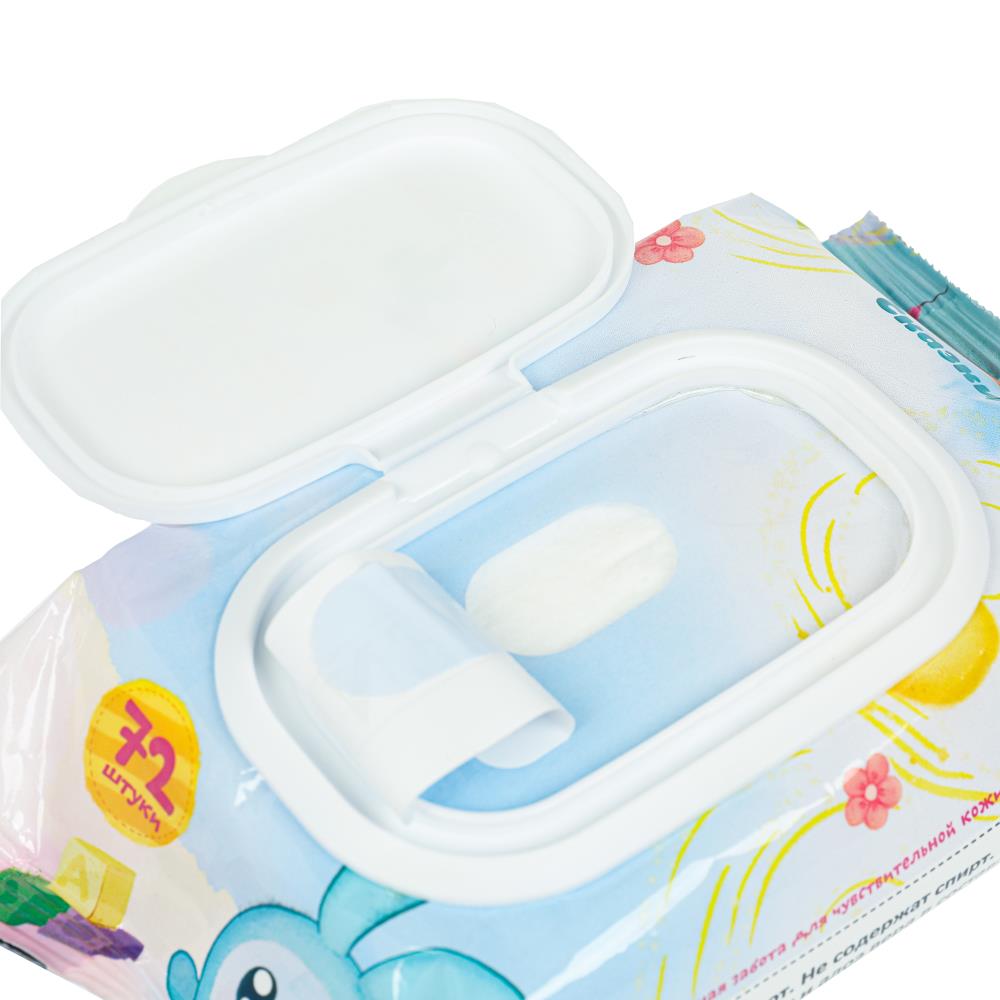 Влажные детские салфетки Малышарики с клапаном 72 шт. Заботливая мама