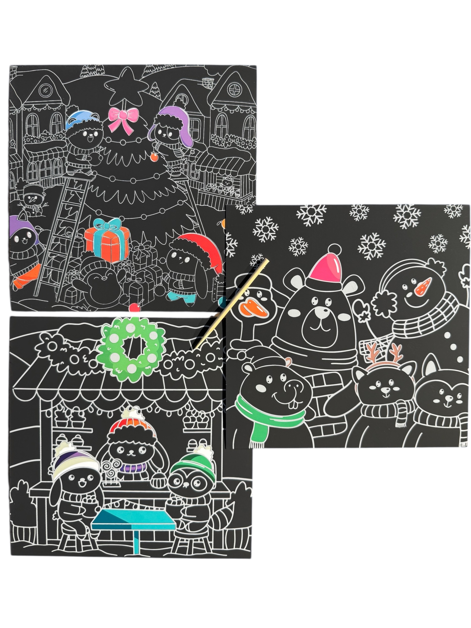Творческий набор, который сочетает сразу три увлекательных занятия. Ребёнок может стирать верхний чёрный слой и открывать блестящую картинку, раскрашивать детали и придумывать свои собственные истории. Идеален для развития воображения, мелкой моторики и аккуратности.