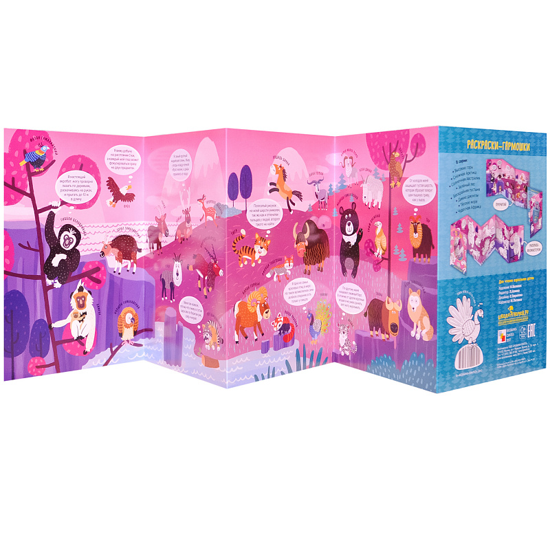 Небольшая книжка-гармошка легко превращается в панораму с высокогорным пейзажем. Маленькому художнику предстоит раскрасить с помощью карандашей и фломастеров животных, обитающих в горах. Справиться с этой интересной, но непростой задачей ему поможет цветовая подсказка с множеством интересных фактов о мире живой природы на обороте.