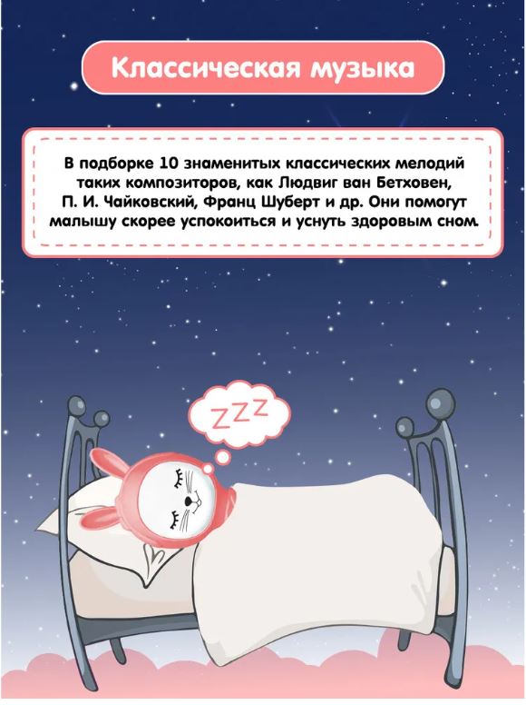 -Классическая музыка. 10 знаменитых мелодий в подборке таких композиторов как В.А. Моцарт, П. И. Чайковский и др., помогут малышу скорее успокоиться и уснуть здоровым сном
