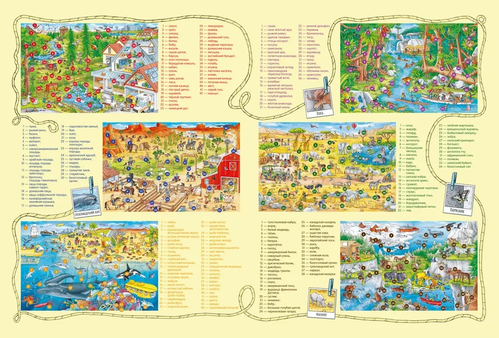 Виммельбух рассказывает о жизни самых разнообразных обитателей нашей планеты. Львы и олени, орлы и киты, жизнь животных в дикой природе и в зоопарке. Маленькие читатели будут много раз возвращаться к этой книге. Следя за приключениями ее героев, они выучат названия животных и узнают многое об их жизни.
